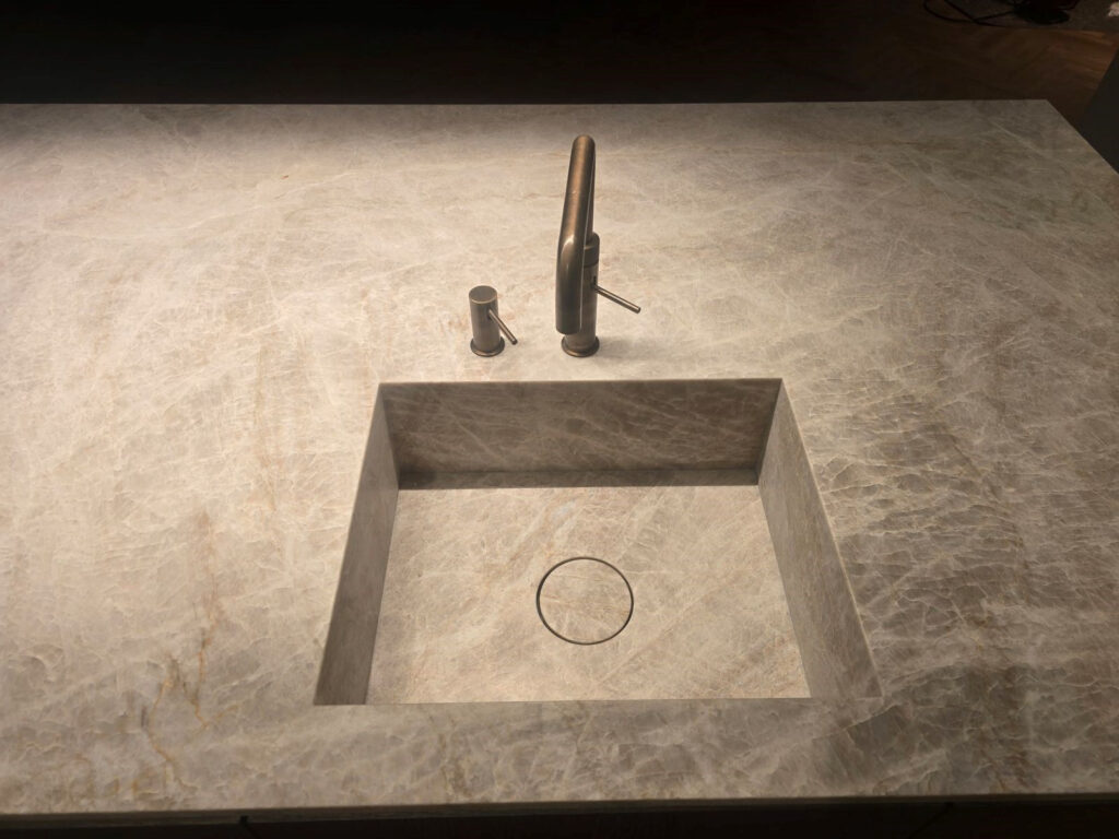 Jeg vælger gerne træ fra bæredygtig skovdrift samt natur sten til bordplade.